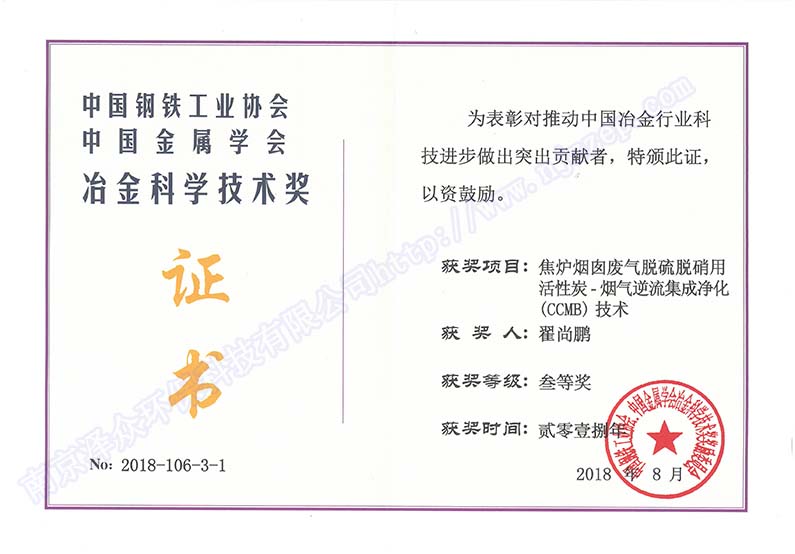 公司專長于活性炭煙氣凈化技術,創新能力突出,成功研發具有獨立自主知識產權的活性炭-煙氣逆流集成凈化CCMB(ActivatedCarbon Countercurrent Moving Bed)技術,形成獨立自主知識產權體系,由中國金屬學會評價鑒定達到國際領先水平,獲得冶金科技三等獎,被評為“鋼鐵產業鏈綠色低碳好技術”,入選中國鋼鐵工業協會先進節能環保技術,入選生態環境部國家先進污染防治技術目錄推廣技術。